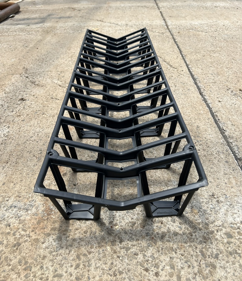 The Krtos, with its unique and exclusive design, channels all drain water into a narrow gutter in the center of the spacer. The open space between the slab and the gutter provides aeration and prevents the roots from growing out of the slab and into contact with drainage water.